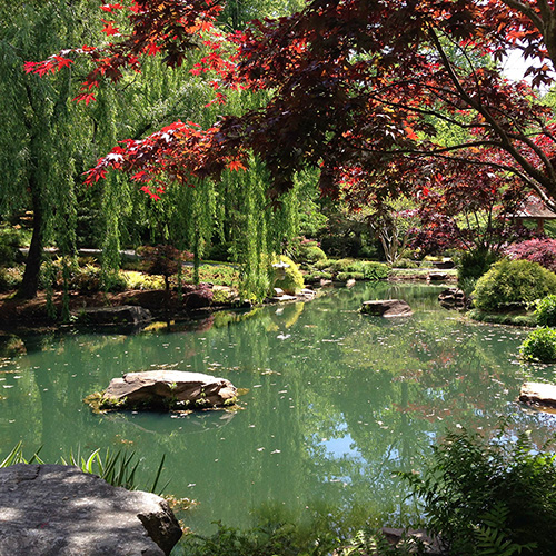 Yet, local garden expert Helen Lawson also encourages you to seek out some of the many public gardens around the city and suggests you begin your day at Gibbs Gardens. Founder Jim Gibbs spent six years searching for this site in order to realize his garden dreams. While one could easily spend several hours exploring the many gardens here, Helen suggests focusing on the Japanese Garden. It's one of her favorite spots, where every turn in the path offers another beautiful vignette.