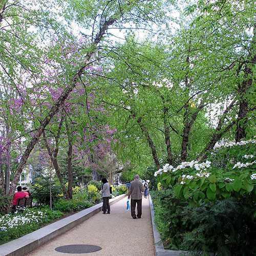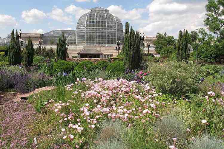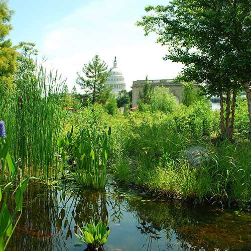 Stroll along the brick pathways of three unique Smithsonian gardens before heading to United States Botanic Garden and the adjacent Bartholdi Park.
