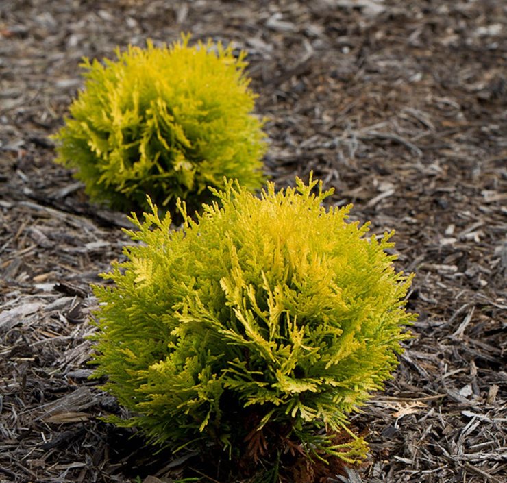 - Create evergreen focal points in the garden by intermixing arborvitaes with your perennials.